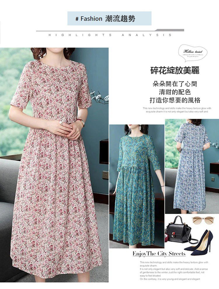 早春新款碎花連身裙